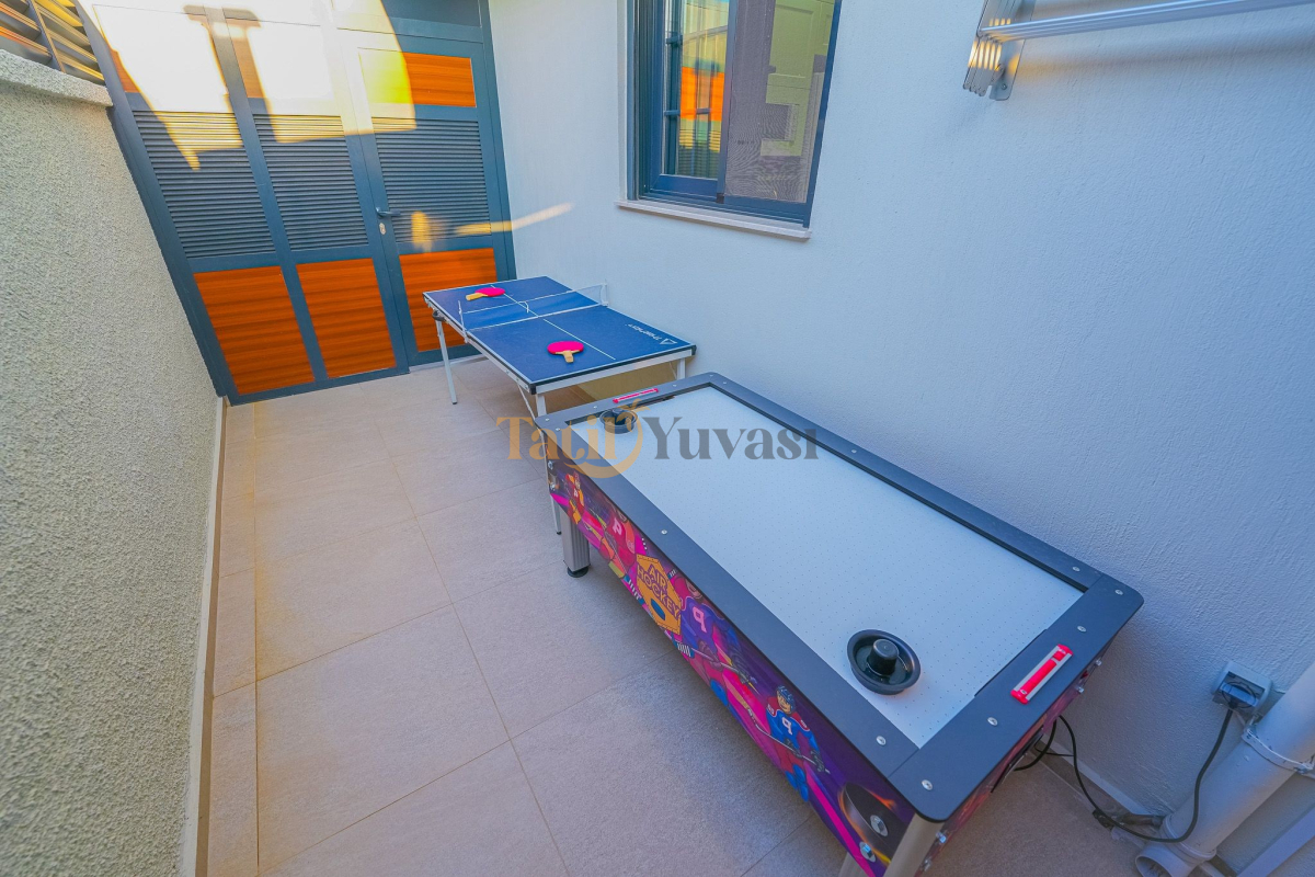 Eğlenceden vazgeçemeyenler için villada langırt masası da bulunuyor. Sevdiklerinizle rekabet dolu dakikalar geçirirken, doğanın huzurlu atmosferiyle günün yorgunluğunu üzerinizden atabilirsiniz.